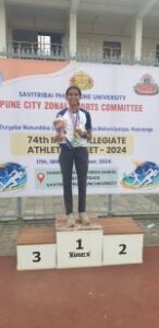 Pune District Athletics Meet (400m): 2nd Place, Inter-Collegiate Athletics Competition: (400m) 1st Position, 4x400m Relay 1st Position. 2024-2025 |