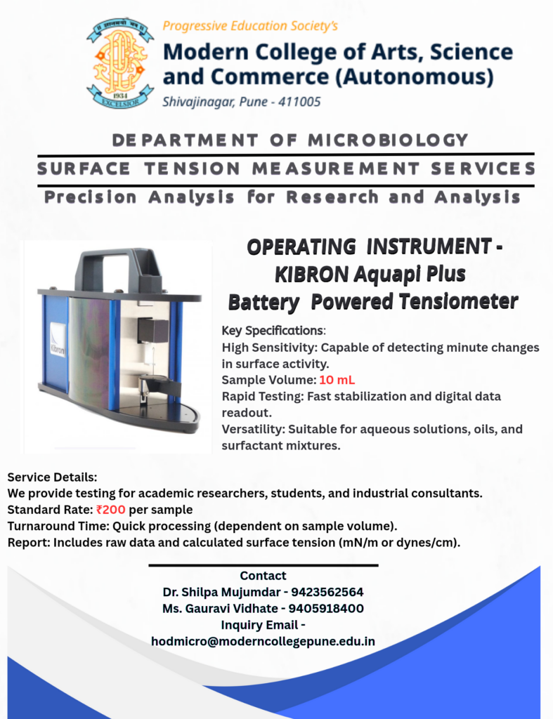 Services - Surface Tension Measurement Services Home Services Surface Tension Measurement Services Surface Tension Measurement Services Antimicrobial Efficacy Testing Services CSAIF (Central Sophisticated Analytical Instrumentation Facility) Surface Tension Measurement Services Surface Tension Measurement Services Antimicrobial Efficacy Testing Services CSAIF (Central Sophisticated Analytical Instrumentation Facility)